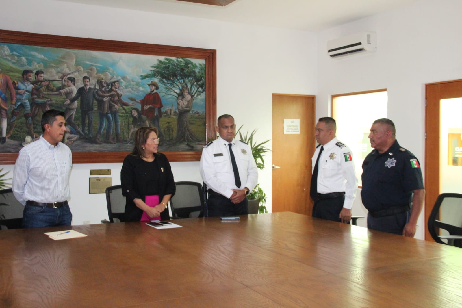 Acompañada por el secretario General del Ayuntamiento, Benjamín Pérez Álvarez y el titular de Seguridad Pública Municipal, comisario Jorge Ramírez Leyva; la edil soledense ratificó ahora como titular de Fuerzas Municipales al comandante Juan José Sierra López, quien previamente se le había dado la encomienda como responsable de despacho, pero en un acto solemne recibió el nombramiento oficial.