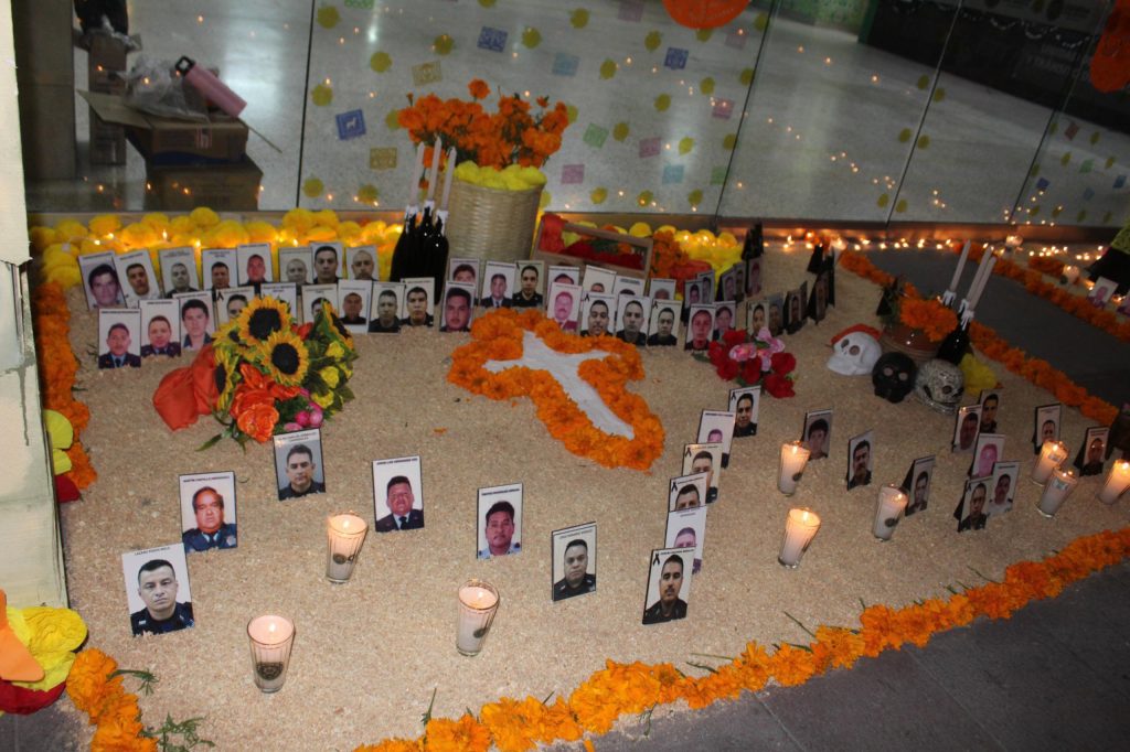 Un total de 247 agentes son los que se encuentran presentes en este altar, que busca enaltecer su memoria con los artículos que más apreciaban, alimentos que disfrutaban y también de su segunda piel, ese uniforme que diariamente portaron con honor.