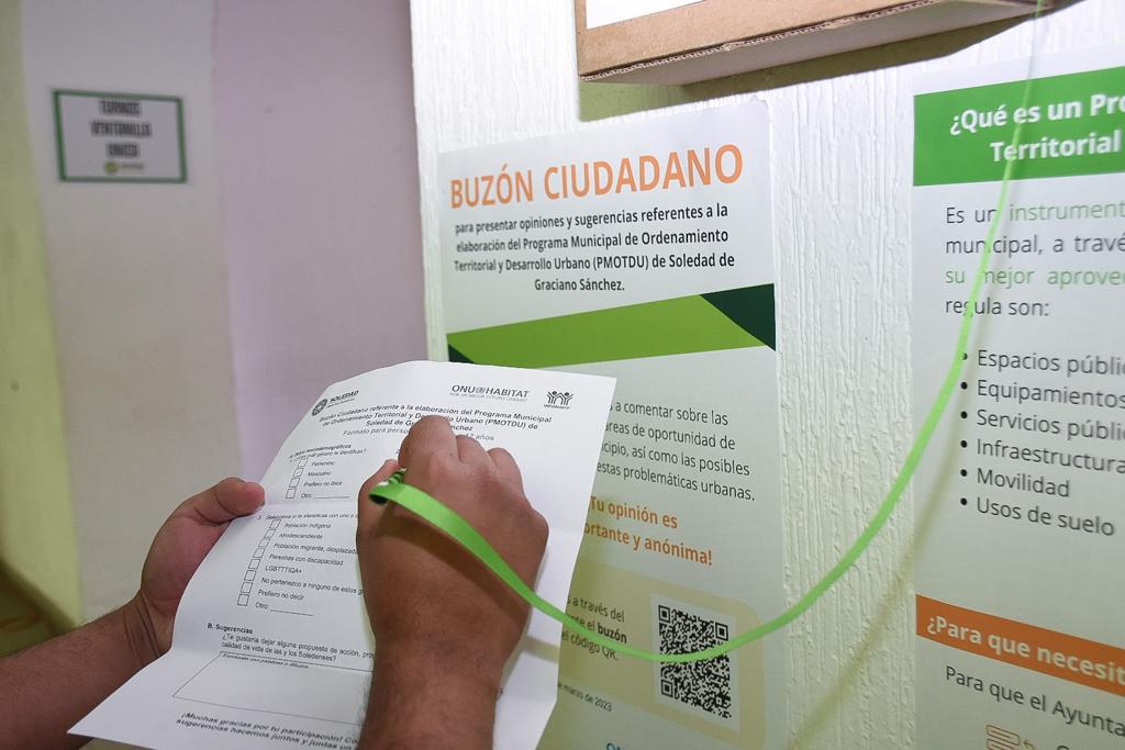 El Palacio Municipal de Soledad de Graciano Sánchez, fue el edificio seleccionado para la instalación del “Buzón Ciudadano”, herramienta que permitirá obtener opiniones y sugerencias de parte de las y los soledenses, las cuales, serán de gran apoyo para robustecer la elaboración del documento municipal.