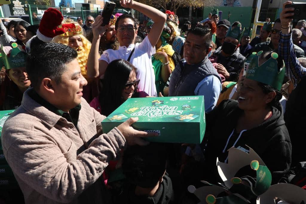 Los rostros de alegría de las niñas y niños se iluminaron al recibir sus juguetes de manos del Gobernador Ricardo Gallardo, así como de los Tres Reyes Magos que lo acompañaron e igualmente, cientos de madres de familia, adultos mayores y hasta personas que viajaban en transporte público, recibían su Rosca de Reyes, agradeciendo la generosidad y la voluntad para seguir apoyando a quienes más lo necesitan.