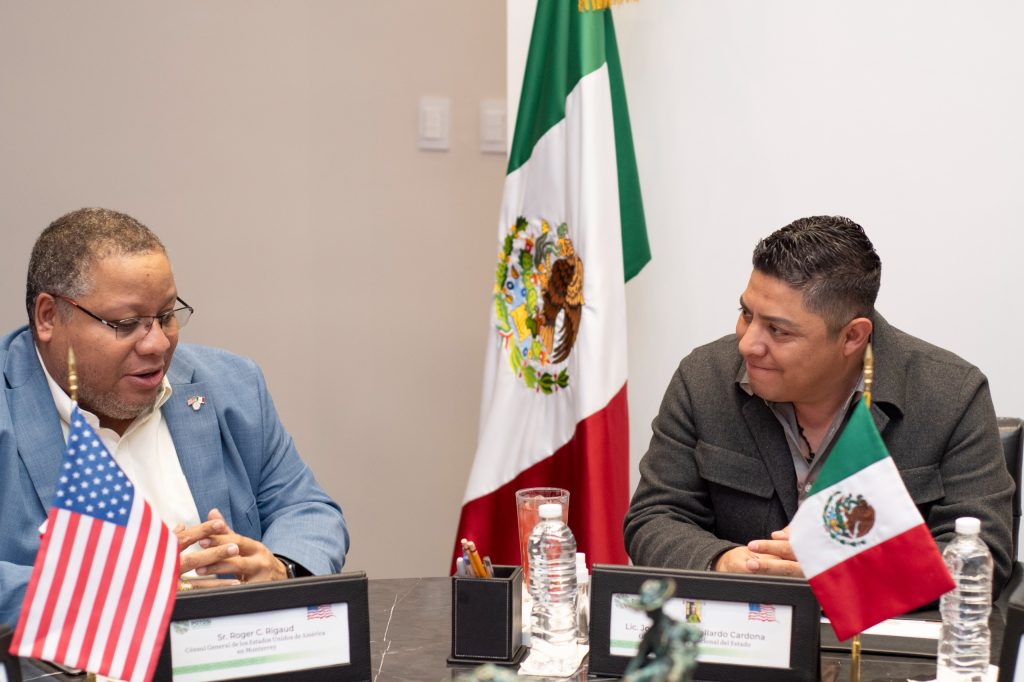 Para dar seguimiento a la agenda bilateral de colaboración social y económica e intercambio cultural, de educación y turismo, el Gobernador Ricardo Gallardo Cardona se recibió en Palacio de Gobierno con el Cónsul General de Estados Unidos en Monterrey, Nuevo León, Roger C. Rigaud y sus equipos de trabajo.