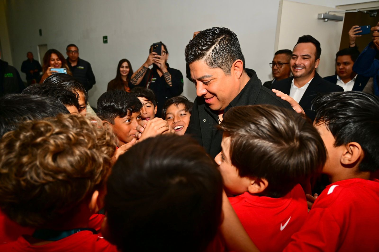 En el Centro de Negocios Potosí, en medio de la alegría de las los jóvenes que pusieron en alto el nombre de San Luis Potosí, el Mandatario Ricardo Gallardo resaltó que en el Estado se cambian vidas a través del deporte, se duplican oportunidades y se mejoran apoyos para motivar a la niñez y juventud potosina «le estamos apostando a ustedes y vamos a seguir confiando en que pueden cumplir sus metas gracias a que viven en un Estado que no tiene límites».