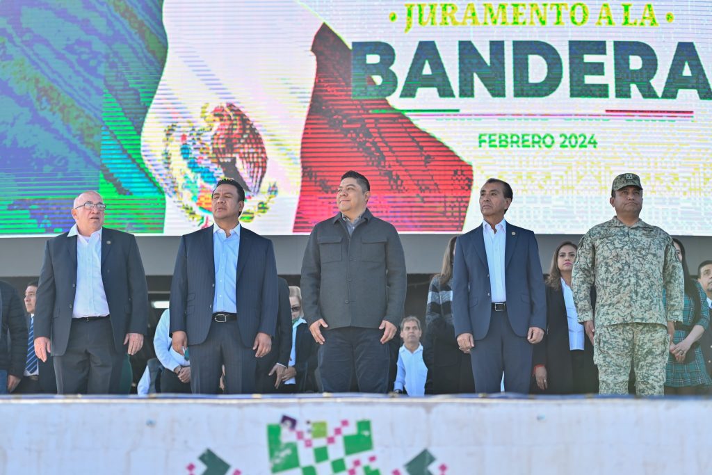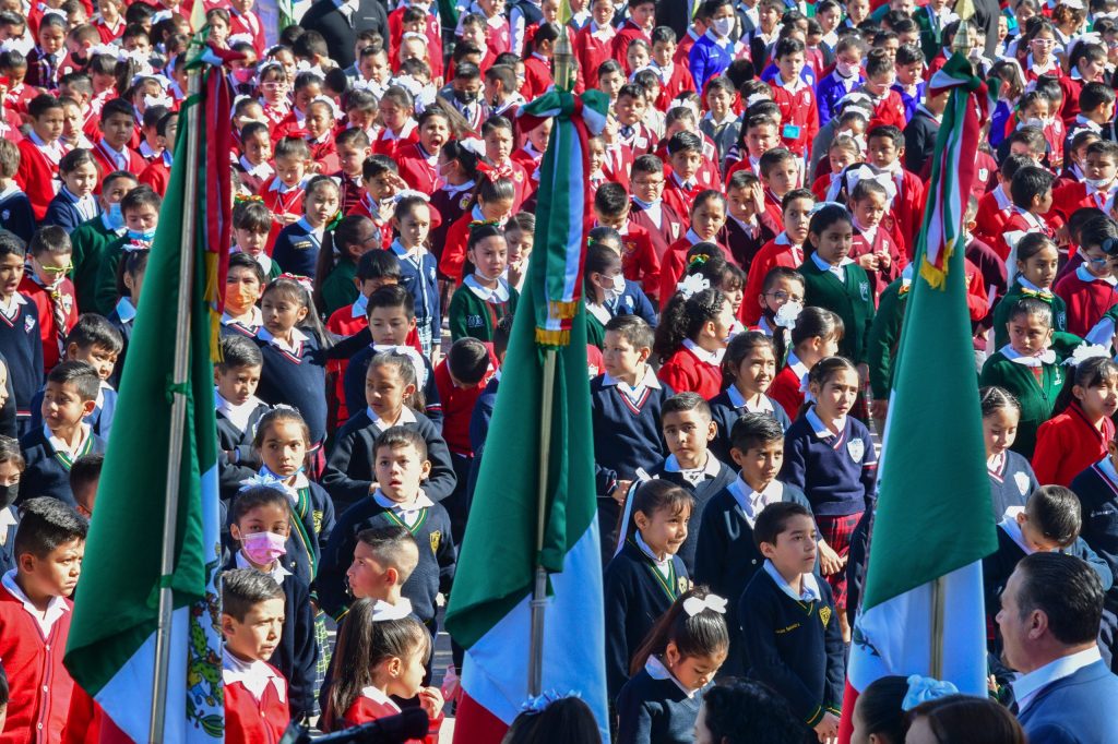 • En el tradicional evento el Gobernador llamó a niñas y niños a honrar, respetar y sentir orgullo por los símbolos patrios y los valores de identidad nacional