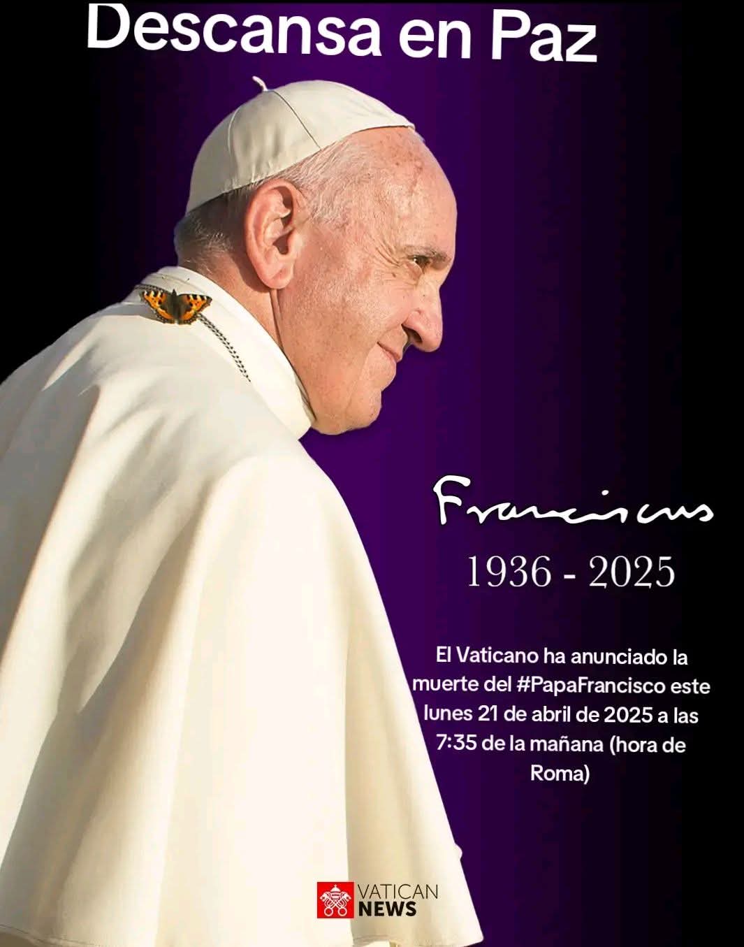 El Papa Francisco falleció en Roma, a la edad de 88 años. La noticia fue confirmada por el cardenal Kevin Joseph Farrell, Camarlengo de la Santa Romana Iglesia.