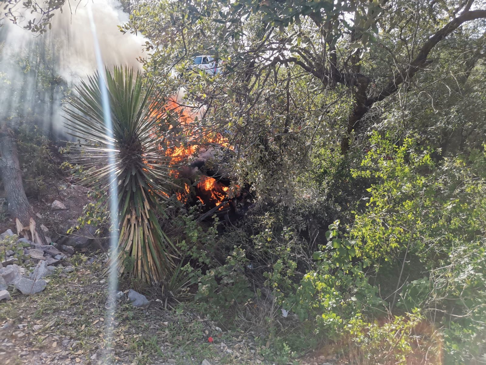 El vehículo, tras salir de la carretera se incendió, según se aprecia en fotografías difundidas.