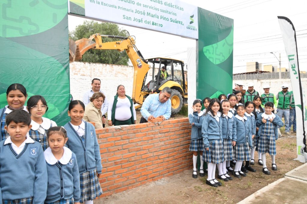 Juan Manuel Navarro Muñiz, Alcalde de Soledad de Graciano Sánchez, encabezó el arranque de una nueva obra de infraestructura educativa en la escuela primaria “José María Pino Suárez”, ubicada en la comunidad de San José del Barro, institución que este 9 de septiembre celebra su 84 aniversario de fundación; con una inversión municipal se construirán dos aulas didácticas, un módulo de servicios sanitarios y obras complementarias que beneficiarán a 120 alumnos de la institución, cumpliendo así con la encomienda de fortalecer la infraestructura educativa y acercar más beneficios a las familias soledenses.