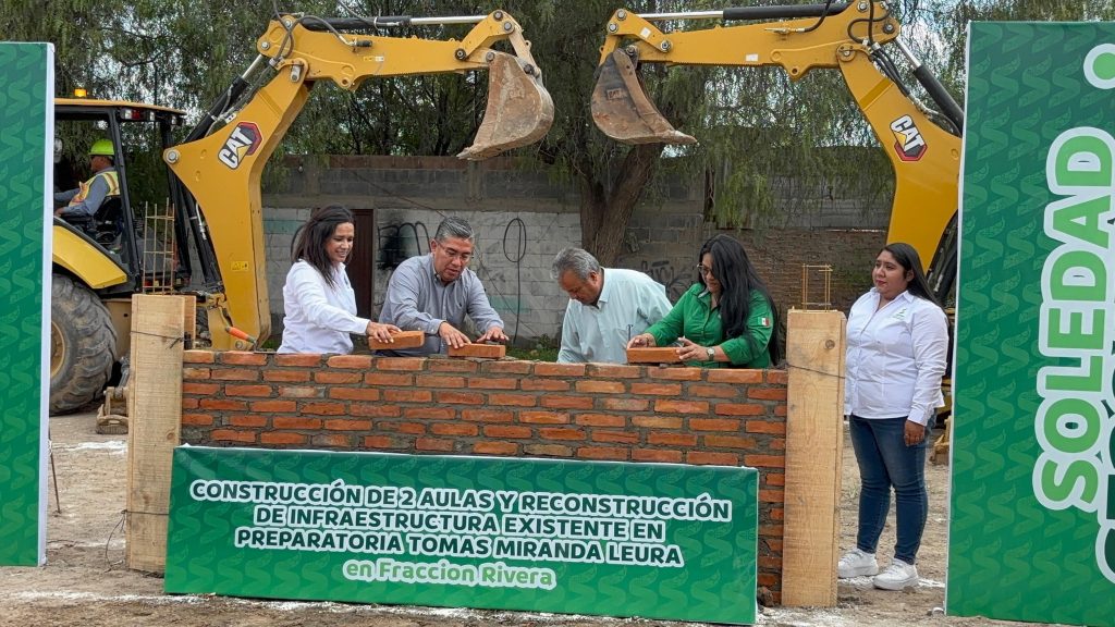 Juan Manuel Navarro Muñiz, Alcalde de Soledad de Graciano Sánchez, dio el banderazo de comienzo a los trabajos de construcción, rehabilitación y ampliación de la escuela Preparatoria “Tomás Miranda Leura”, ubicada en la comunidad Fracción Rivera, donde anunció que, gracias a la suma de esfuerzos entre el Ayuntamiento y el Gobierno del Estado, la obra incluirá además de la rehabilitación de dos aulas, la construcción de otras dos más, sanitarios, accesos, iluminación, así como un patio cívico completamente nuevo.