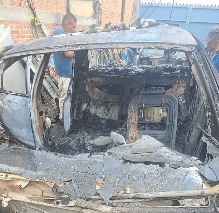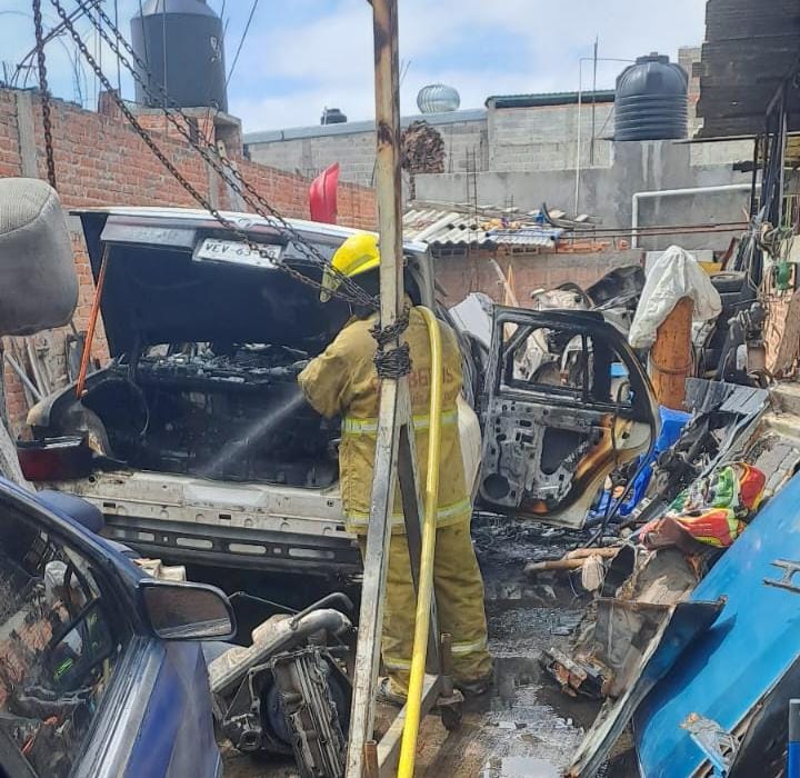 En el lugar, ubicado en el primer cuadro de la ciudad, aproximadamente a las 10 de la mañana, de este miércoles, una chispa comenzó el fuego en un vehículo que era cortado en pedazos.