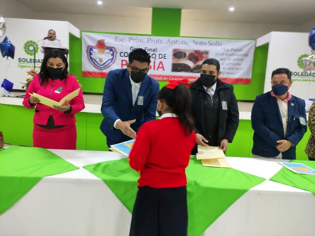 El Director de Educación y Acción Cívica de Soledad, José Juan Castro Castillo, supervisó el concurso final de poesía en el que participaron alumnos de primero a sexto año de la escuela primaria, Antonio Soto Solís, realizado en el auditorio municipal de Presidencia.