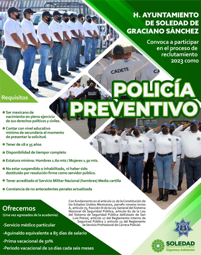 Para mayor información, las y los interesados pueden presentarse en la Comandancia Central ubicada en calle Iturbide #550 en la colonia Rancho Pavón, o comunicarse al teléfono: 444 8-54- 74-63.