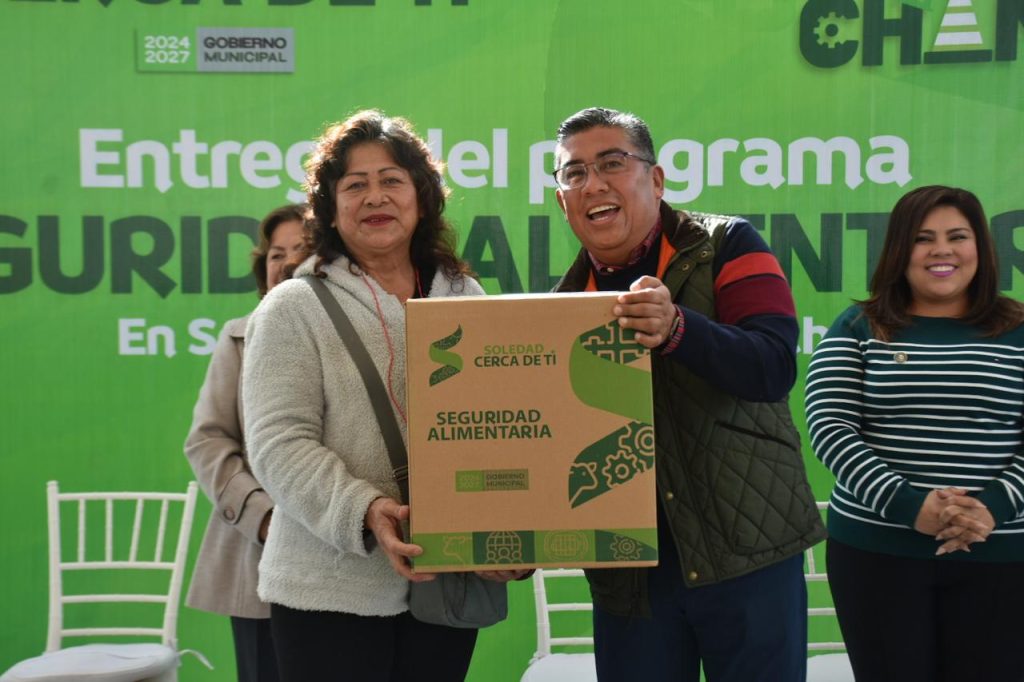 En el marco de sus primeros “100 Días de Chamba”, el edil soledense afirmó que se trata de un proyecto que fortalece el bienestar de las y los beneficiarios, mediante un paquete de productos de la canasta básica en mayor cantidad y calidad, asegurando una alimentación sana, equilibrada y justa para más de 26 mil familias.