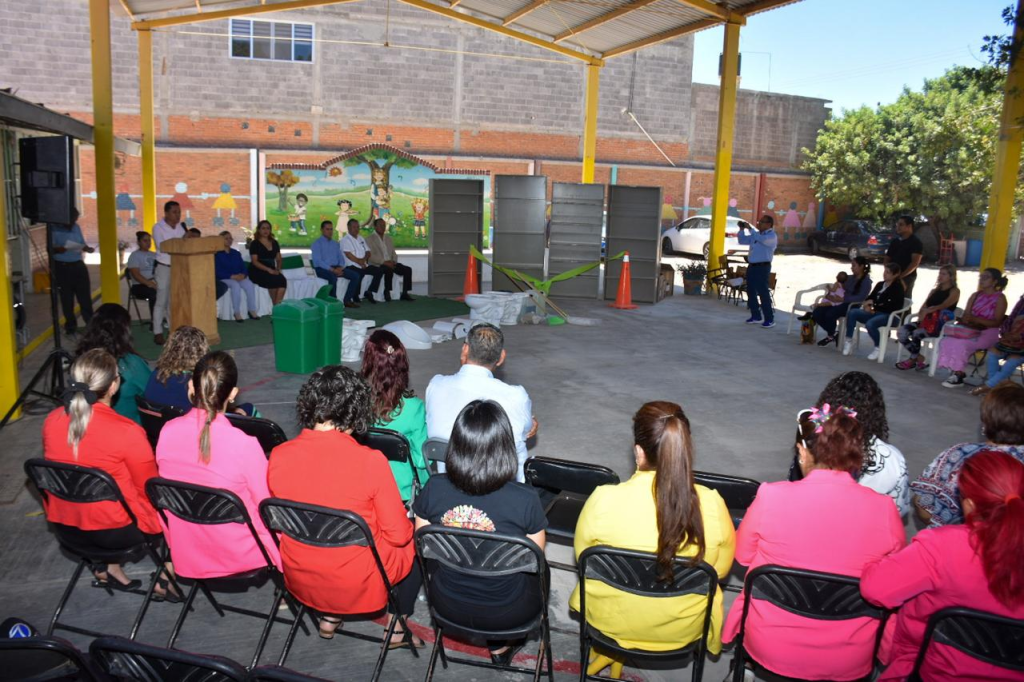 - Como parte de la colaboración entre Gobiernos Municipal y Estatal, se entregan kits de sanitarios y artículos de limpieza general, además de mobiliario, en un Jardín de Niños y una Primaria, este día.