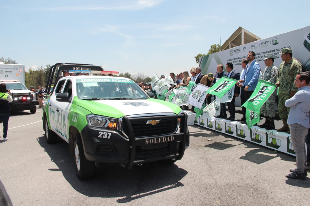 Durante el evento, el Gobernador del Estado, Gallardo Cardona también hizo entrega de patrullas a diversos municipios, tal como lo hizo en el año 2022 al municipio de Soledad, cuando recibió 40 patrullas que fortalecieron el parque vehicular, acción que fue reconocida por la Alcaldesa, quien elogió el interés estatal para seguir impulsando y fortaleciendo la seguridad pública en todo el estado y en municipios.