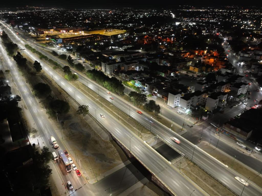 Más de 1200 luminarias le dan forma, luz, color y calor a la imagen de la principal vialidad que cruza la cabecera principal de Soledad de Graciano Sánchez. El trabajo de los encargados de las tareas, el trabajo en la actual administración ya da frutos y se refleja -en este caso- con la iluminación de un tramo carretero usado a diario por miles de personas que se veían en riesgo por la oscuridad que imperó en esos rumbos durante tanto tiempo, ahora es diferente y hasta bonito. Los automovilistas y peatones ya tienen una perspectiva diferente y una sensación de seguridad; falta mucho por hacer, si, claro, pero esto es un buen comienzo.