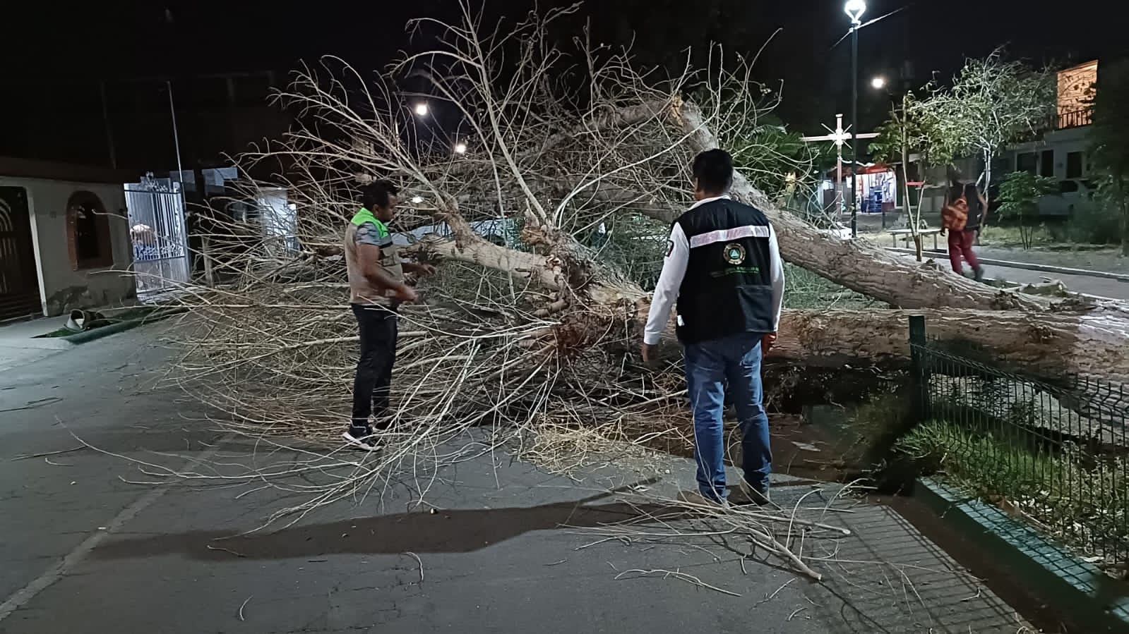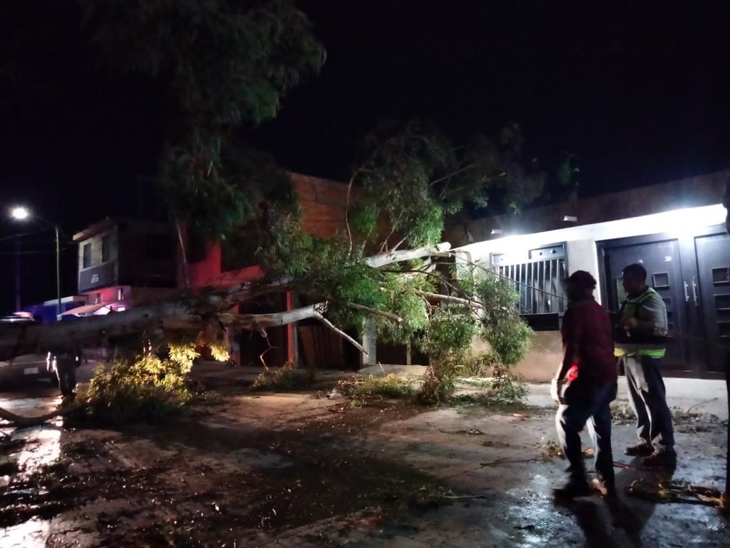 El caso más grave se presentó en la colonia Zapote, donde un eucalipto de aproximadamente 25 metros cayó sobre un poste de luz y luego sobre una camioneta, afortunadamente, no hubo lesionados, solo daños materiales.